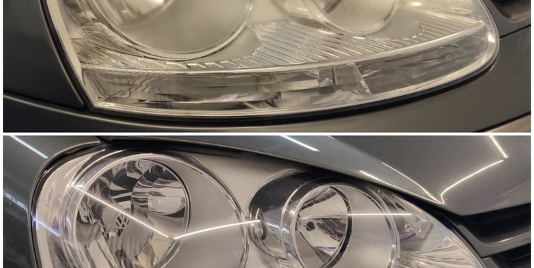 С времето фаровете помътняват и пожълтяват, което намалява видимостта и безопасността. Чрез полиране се премахва увреденият слой и се възстановява прозрачността. След това се нанася защитно (често керамично) покритие, което предпазва фаровете от повторно увреждане и UV лъчи. Резултатът е по-ясна светлина и по-добър външен вид.